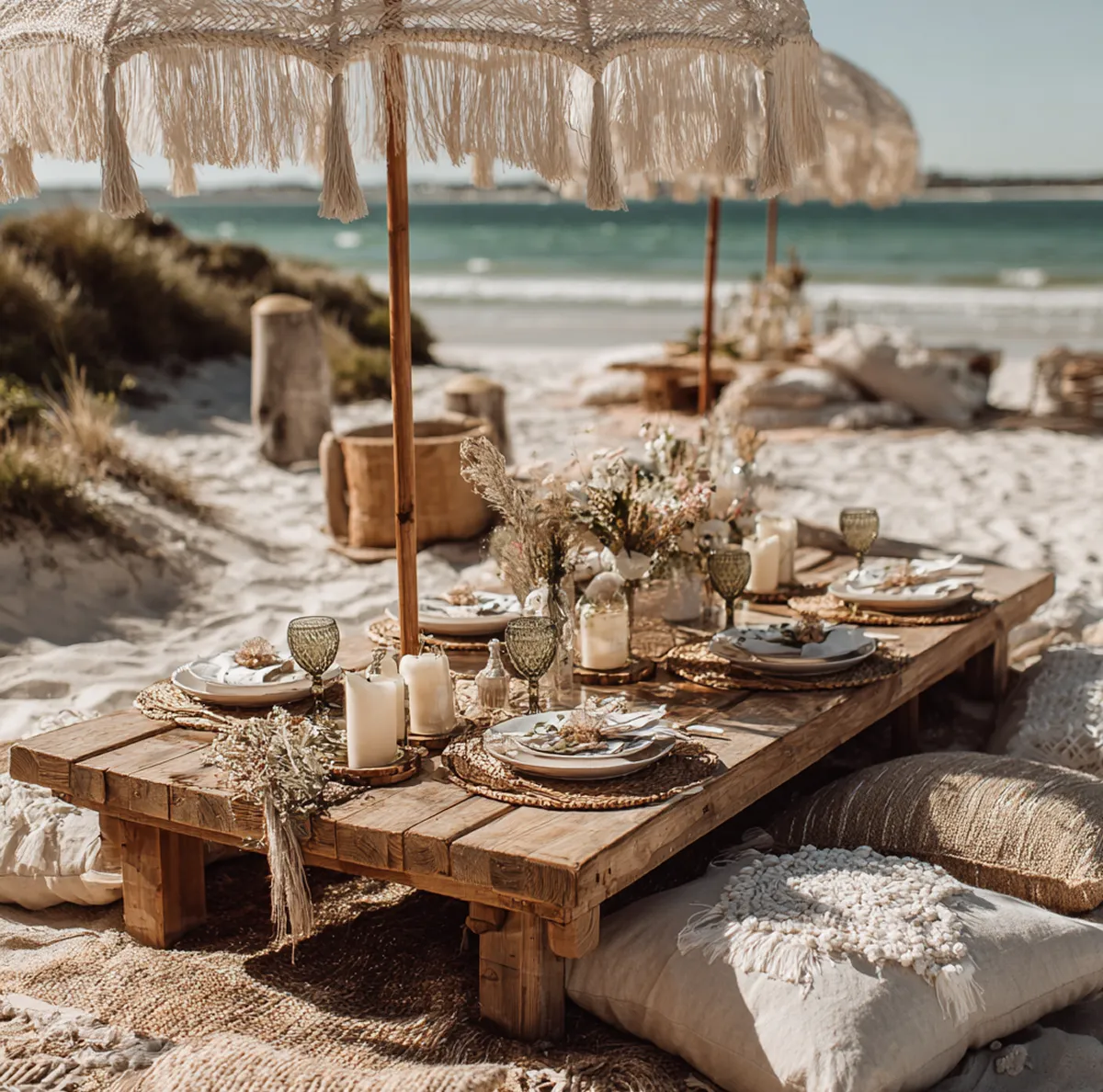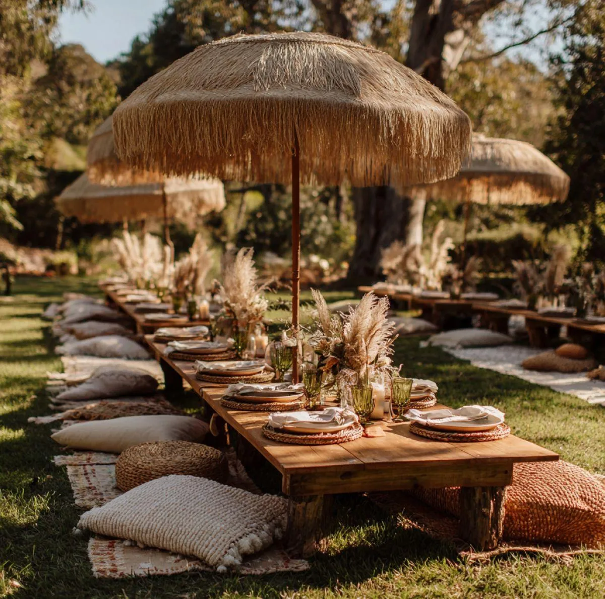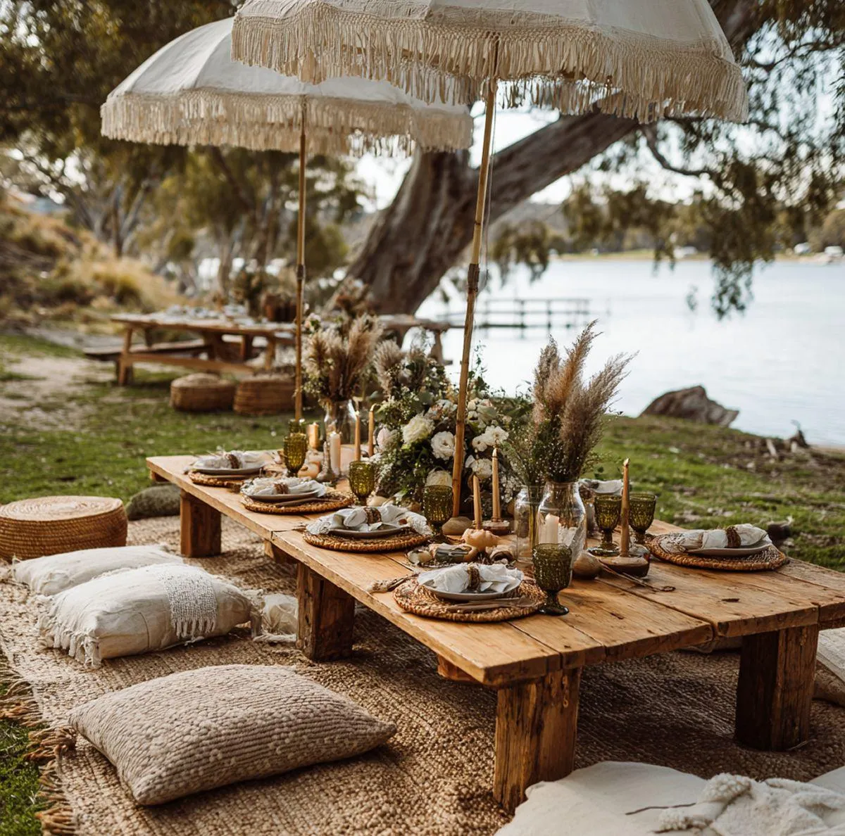 We supply the set-up and styling. You’re welcome to bring your own food and drinks, or we can recommend trusted caterers and grazing suppliers. BYO alcohol is welcome.